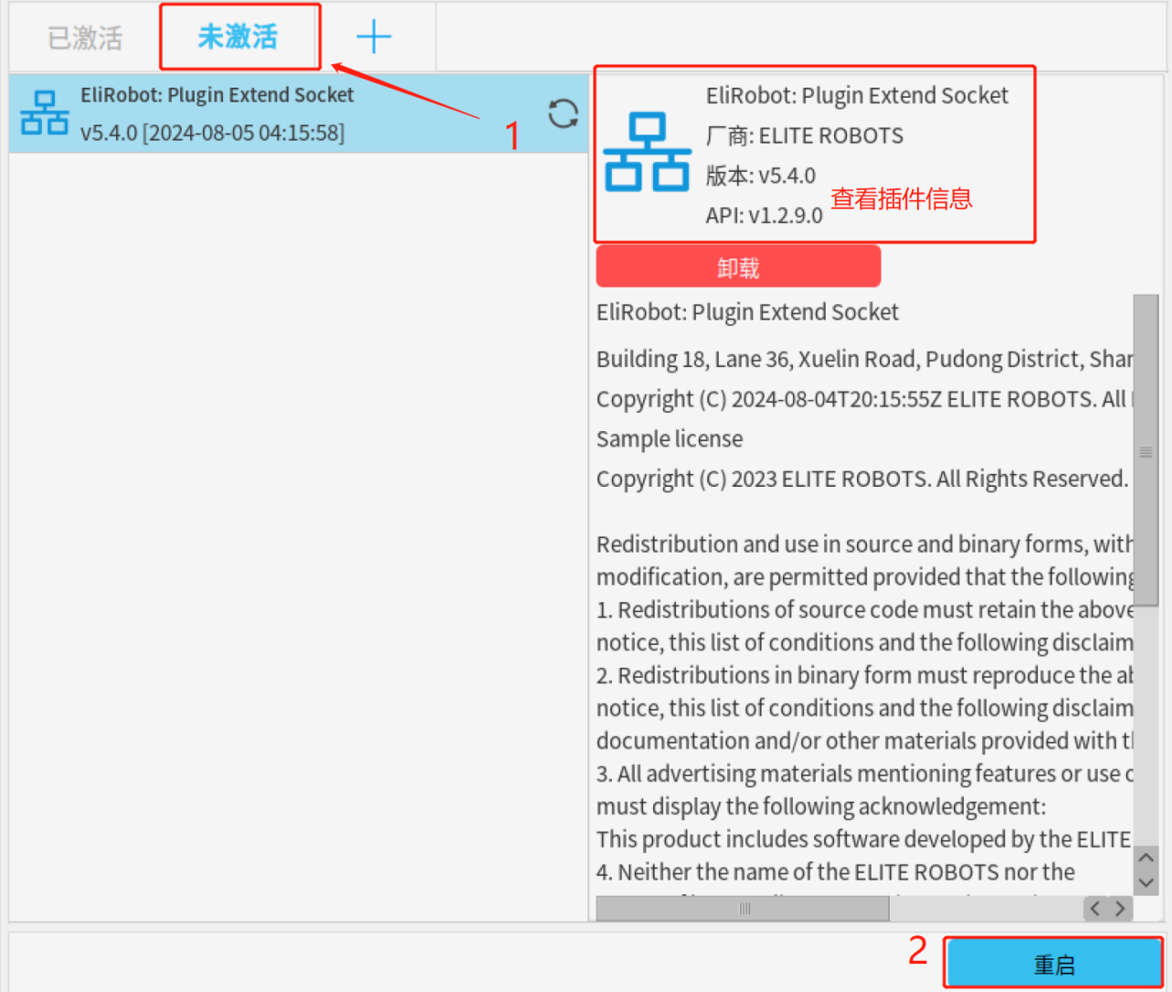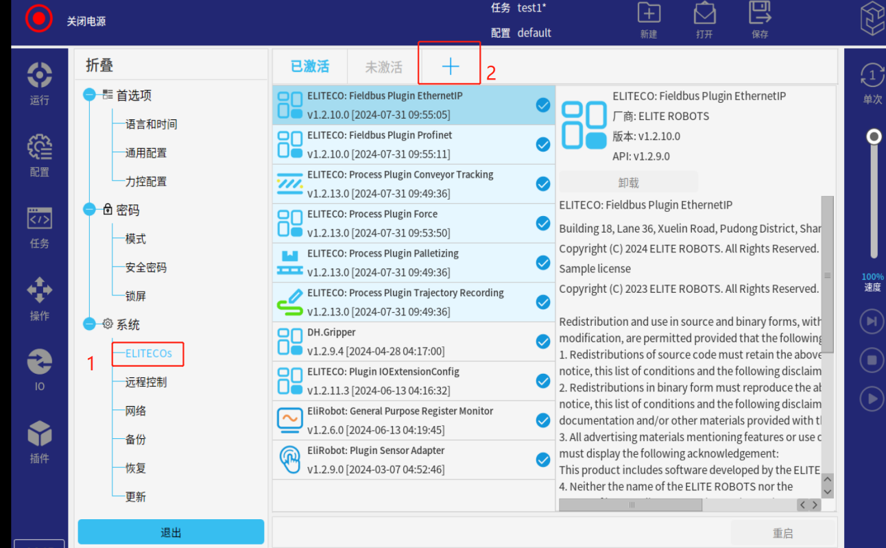 2.2.2.點擊右上角菜單-設置-選擇系統目錄下“ELITECOS”-點擊“+”-選擇U盤文件找到U盤里的插件包-點擊“打開”-選擇“未激活”確認無誤后-點擊”重啟3“即可